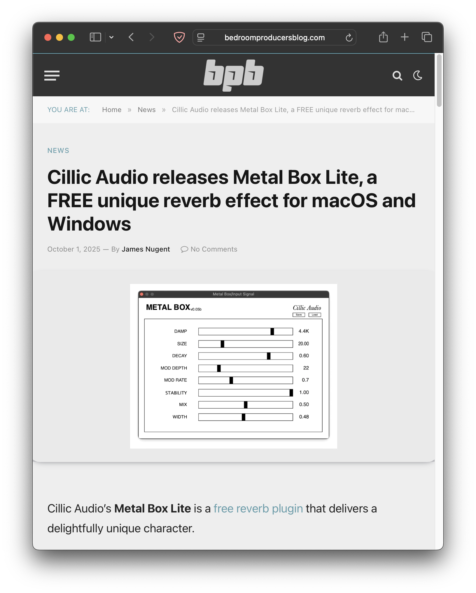 Metal Box was recently reviewed by James Nugent of Bedroom Producers Blog. You can read the full article here. Many thanks to James, Tomislav, and the rest of the team at BPB.